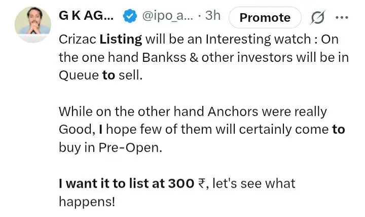 Crizac ltd के शेयरों में First Day जोरदार उछाल -25.56%